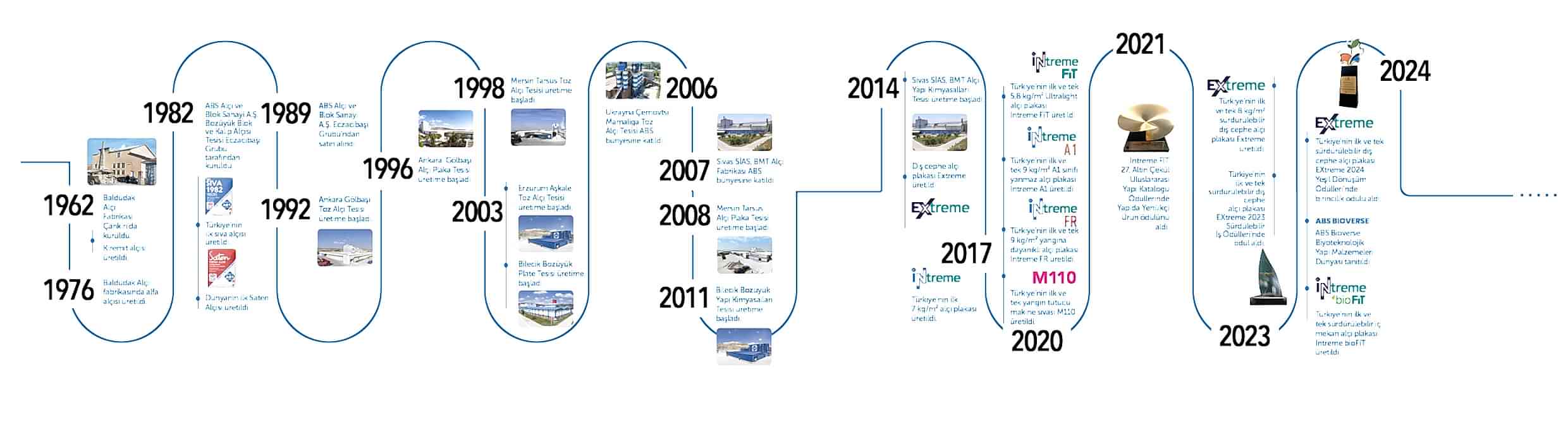 1982 yılında üretime geçen ABS Alçı geleceği olan yapılariçin yenilikçi alçı ürünleri geliştirme vizyonu ile dünyanın ilk saten alçısı, Türkiye ninilk sıva alçısı, ilk ve tek ultralight iç mekan alçı plakası, ilk ve teksürdürülebilir alçı plakaları piyasaya sunmuştur.
